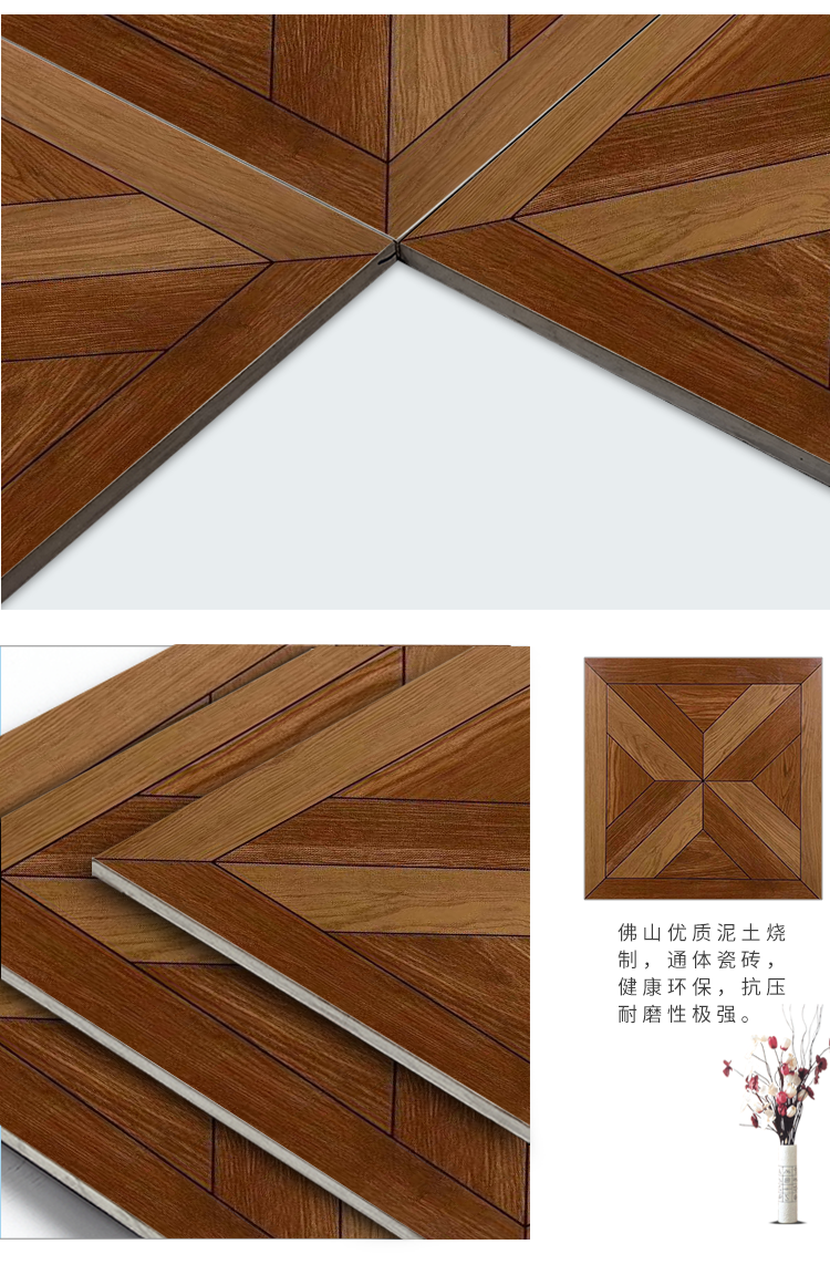 金曼古仿古地磚,采用國際先進的超大型壓機自動成型,經世界一流的滾筒印花和高溫煅燒而成,通過仿石、仿巖、仿木、仿布、仿金屬等多種表現方式,產品花色圖案新穎時尚,領先國際潮流,具有超耐磨、防滑、防污等高性能指標。