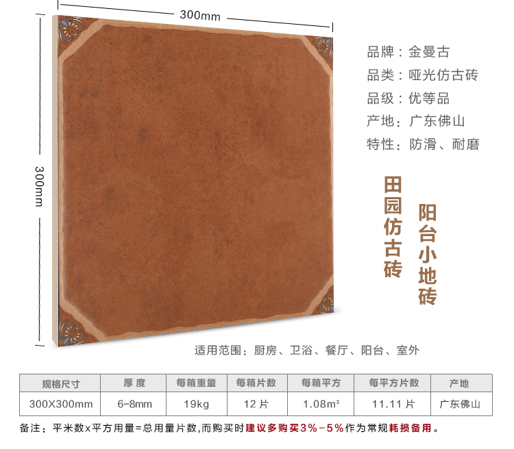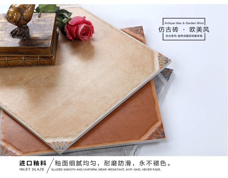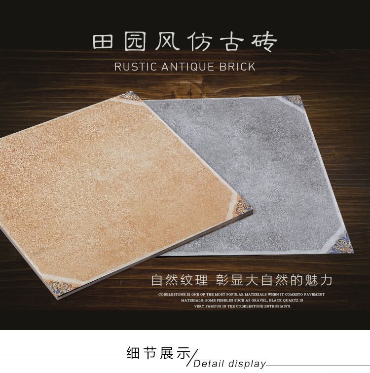 金曼古仿古地磚,采用國際先進的超大型壓機自動成型,經世界一流的滾筒印花和高溫煅燒而成,通過仿石、仿巖、仿木、仿布、仿金屬等多種表現方式,產品花色圖案新穎時尚,領先國際潮流,具有超耐磨、防滑、防污等高性能指標。