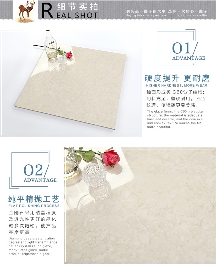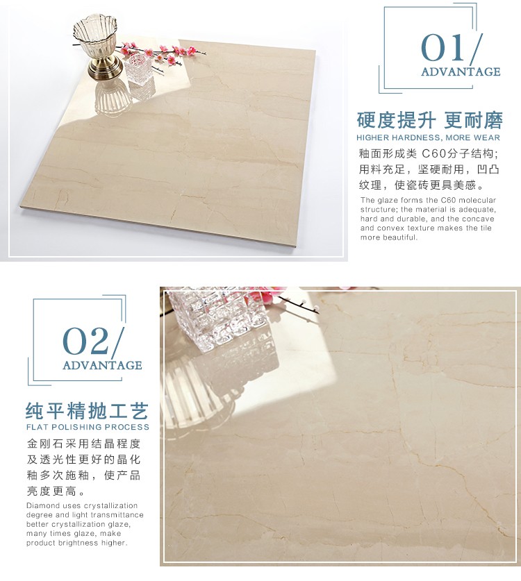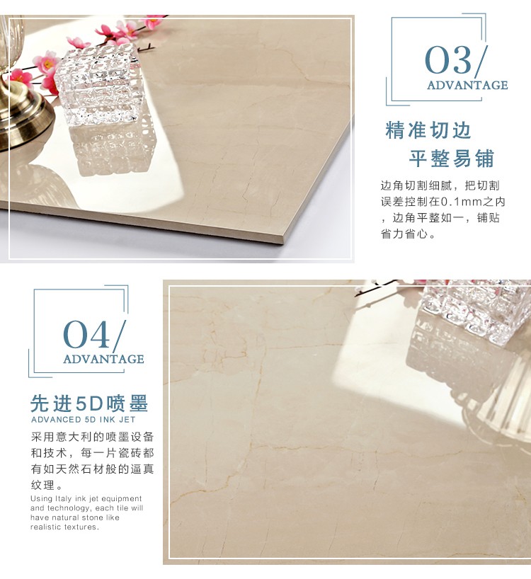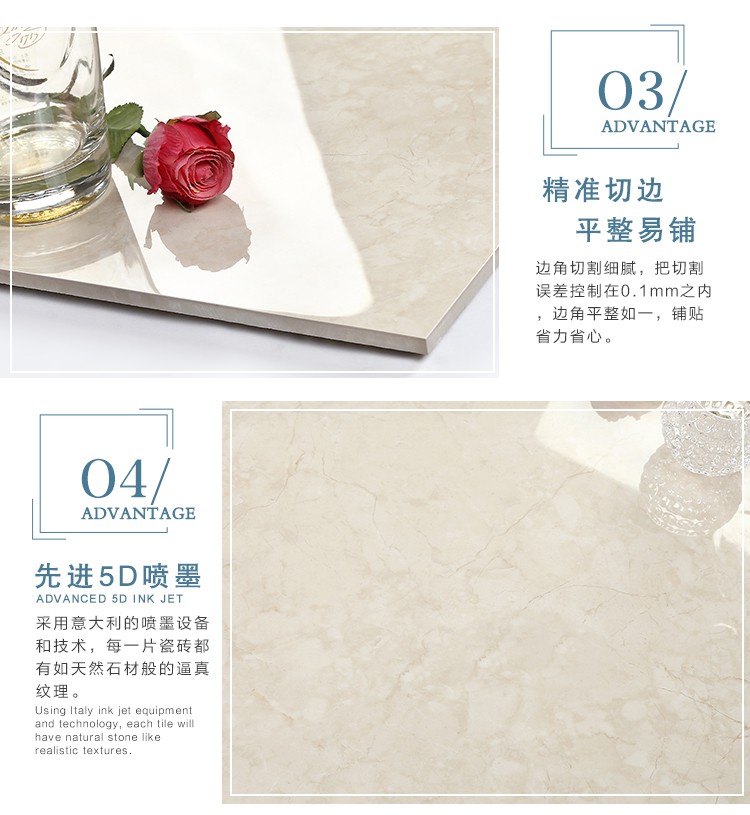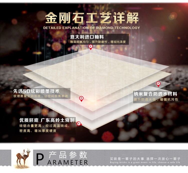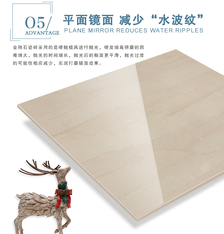 金曼古瓷磚廠家特價金剛石因高品質而得名,是一款極具天然石材效果和微晶石質感的仿石材瓷磚,它不但在價格、環保、耐用和清潔上極具優勢,在質感、規格、花色、重量等指標上,金剛石都遠遠勝于石材、拋光磚。相比其他種類的產品,它最大的特點可以用“高亮度、高耐磨、高平整、高逼真、高清晰、高環保”。