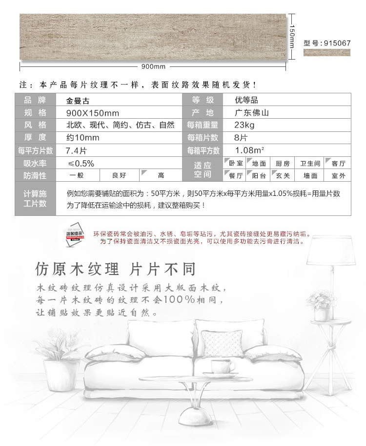 金曼古木紋磚,是一種表面呈現(xiàn)木紋裝飾圖案的環(huán)保建材.紋路逼真、自然樸實、沒有木地板褪色、不耐磨等缺點;曼古陶瓷木紋磚系列線條明快,圖案清晰為特色。本身具有阻燃,不腐蝕的特點,綠色、環(huán)保型建材;產(chǎn)品使用壽命長,耐磨,無需像木制產(chǎn)品那樣周期性地打蠟保養(yǎng)等.