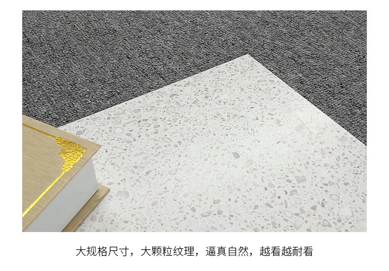 大尺寸水磨石防滑耐磨,應用于公共場合更具優勢,自然簡約的紋理,百搭適用性廣,水磨石里面大顆粒,不規則的石子花紋,很有不確定的隨機美感。始于顏值/陷于工藝/忠于品質!