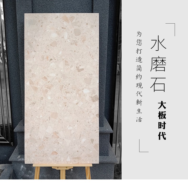 大尺寸水磨石防滑耐磨,應用于公共場合更具優勢,自然簡約的紋理,百搭適用性廣,水磨石里面大顆粒,不規則的石子花紋,很有不確定的隨機美感。始于顏值/陷于工藝/忠于品質!